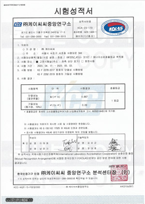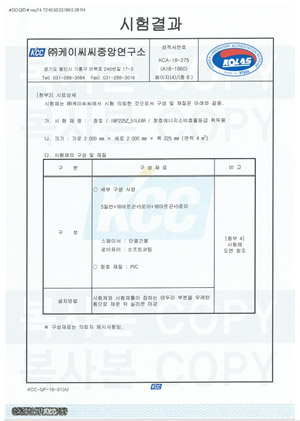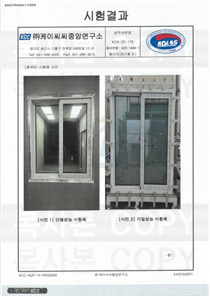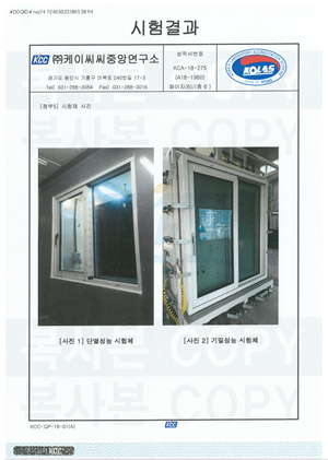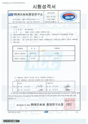 KCC는 합성수지 창호 시스템 전 규격에 대하여 KS품질인증서와 ISO인증을 획득하여 우수한 품질 및 기술력을 인정 받았으며, KCC 패시브 시스템창호는 고기밀성 단열창호 적용 범위를 합격한 창호 효율등급제 인증 제품입니다.
